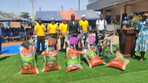 Moment fort de la cérémonie, le Directeur général a procédé à une importante remise de dons au profit du personnel. Il s’agit de 28 motos neuves, 40 vélos, ainsi que 100 sacs de riz et 100 sacs de farine, destinés à encourager et motiver les agents pour l’année 2026.