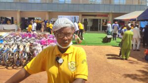 Lamoussa Edith, bénéficiaire d’un vélo et d’un sac de riz, n’a pas caché son émotion :